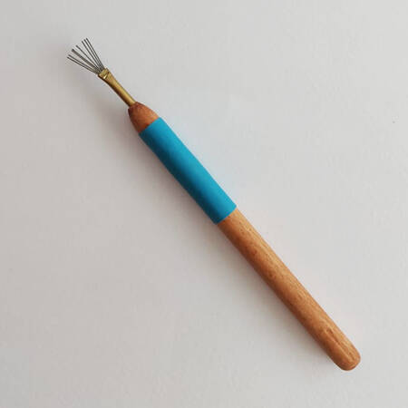 Paslanmaz çelik teller, pirinç boru ve kayın ağacı ergonomik sap ile birleştirilerek kullanışlı hale getirilmiştir.